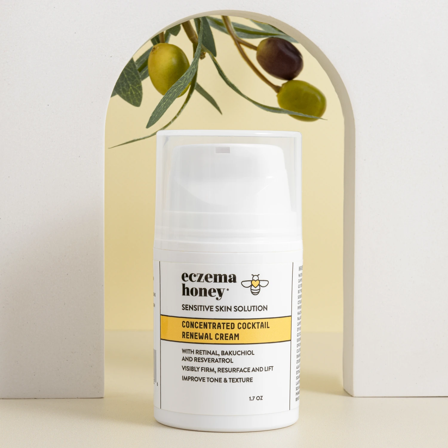 - Anti-aging formula with Retinal, Bakuchiol & Resveratrol, is ideal for sensitive and eczema-prone skin