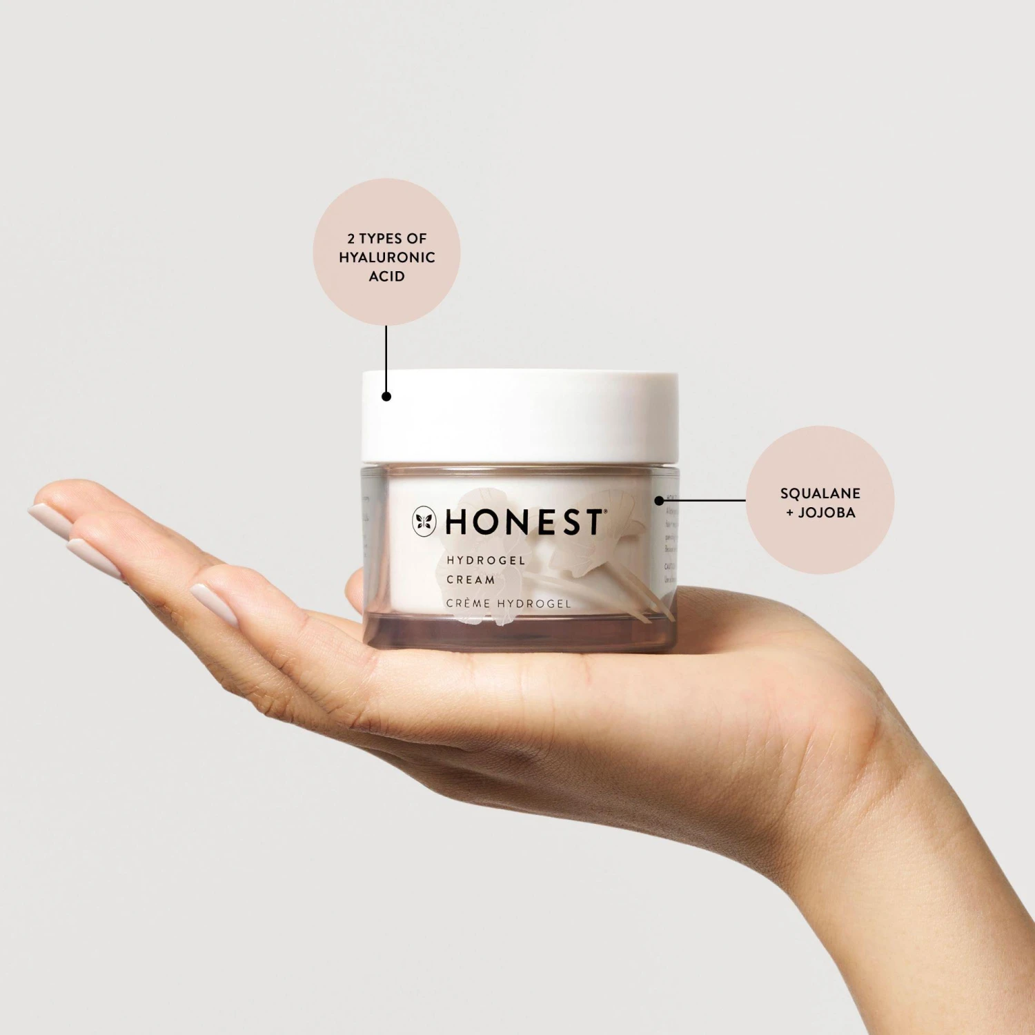 - 2 sizes of Hyaluronic Acid: hydrate, soften + firm & reduce the appearance of fine lines