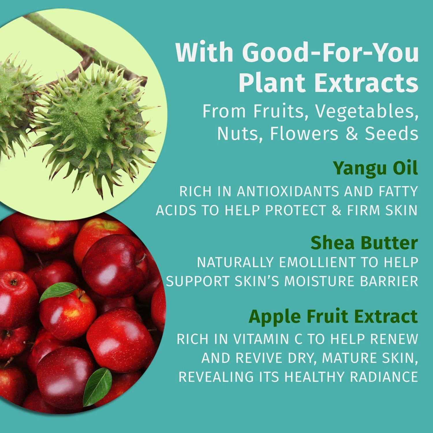 - Apple Fruit Extract: rich in vitamin C to help renew and revive dry skin and reveal a healthy radiance